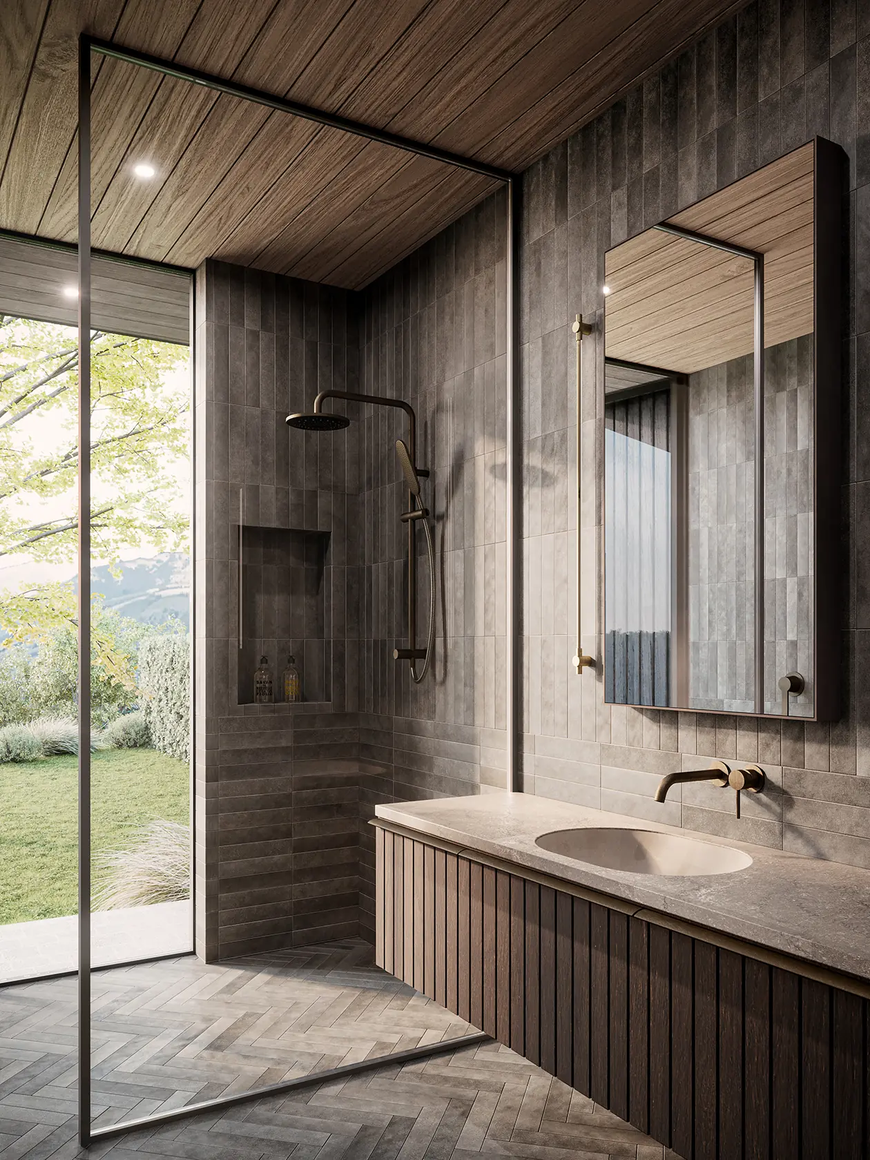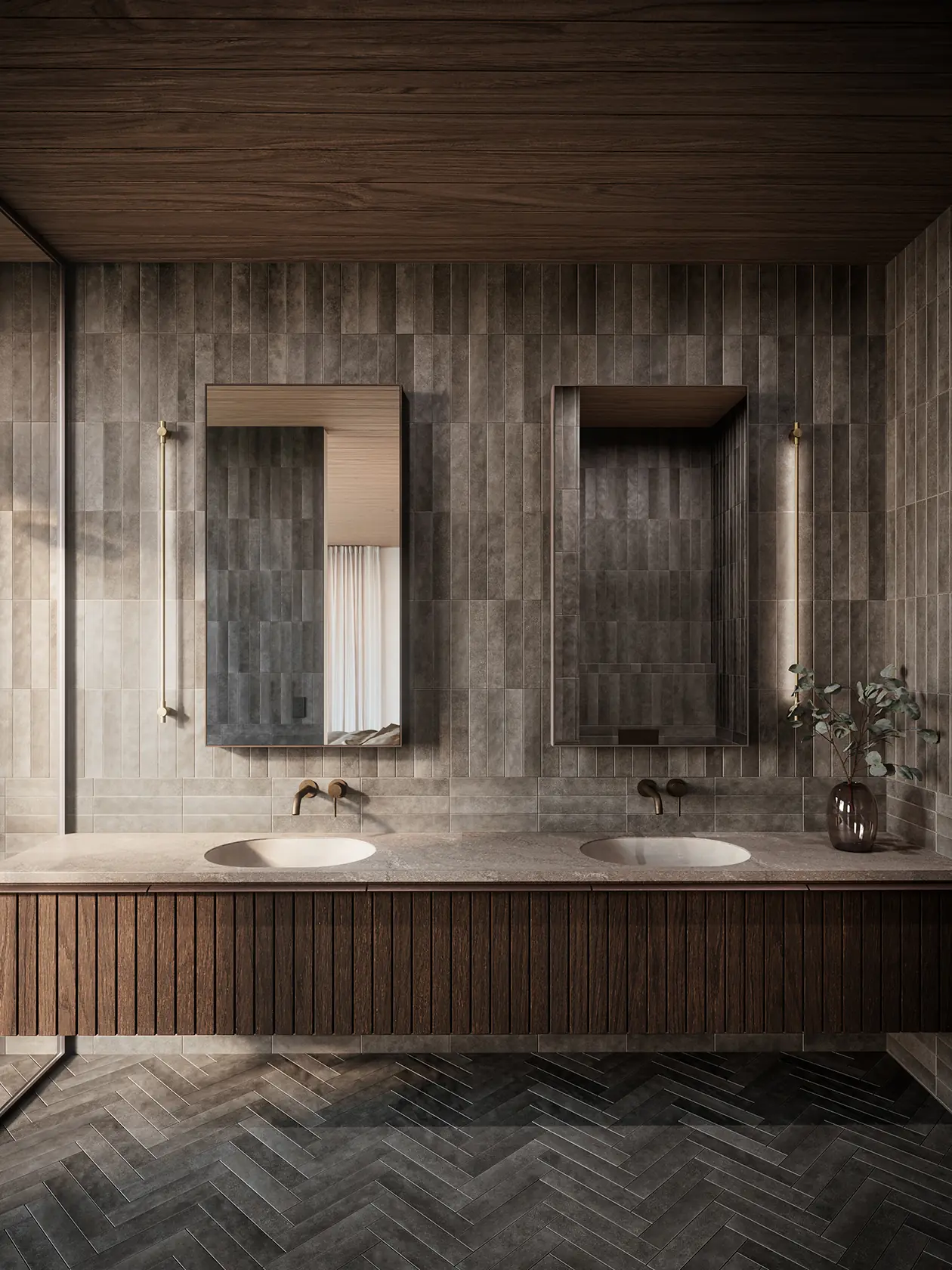Equipe Stage Charcoal Floor Tiles, Herringbone, All Ensuites