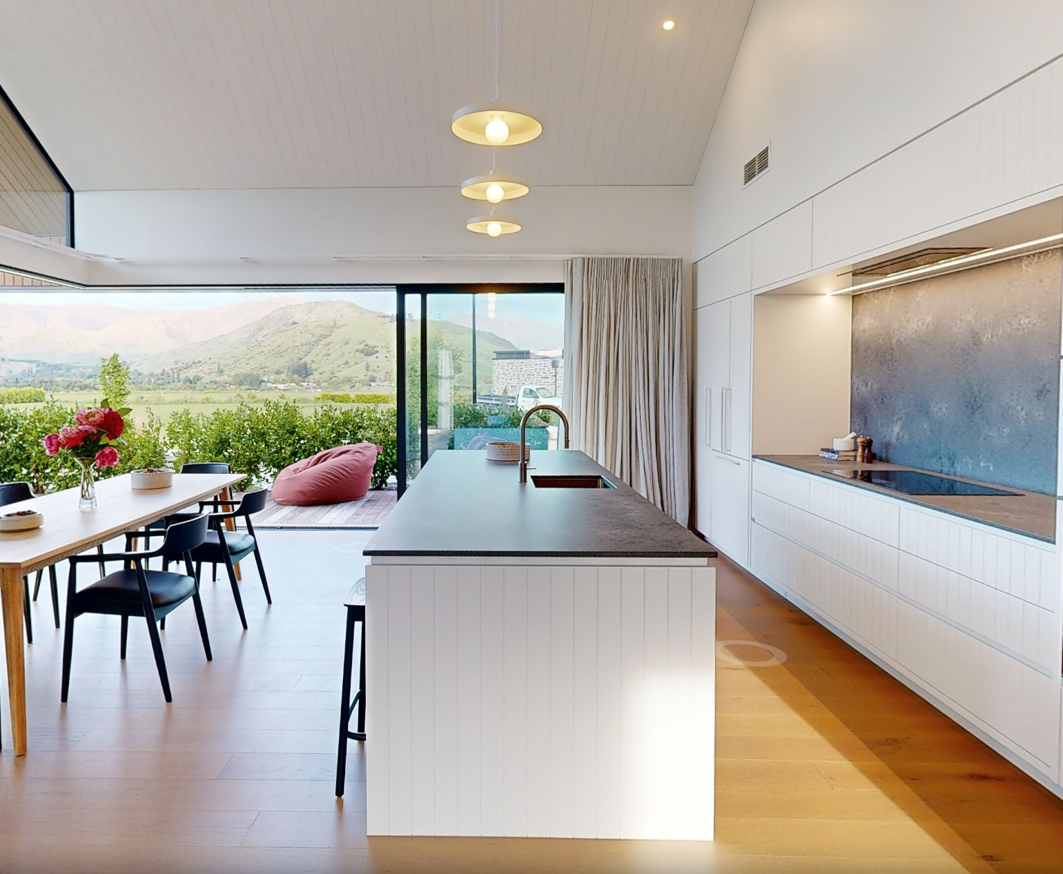 This residence combines luxury with the warmth of a family home, with three bedrooms, two bathrooms, and multiple living areas all set against a backdrop of stunning alpine scenery.