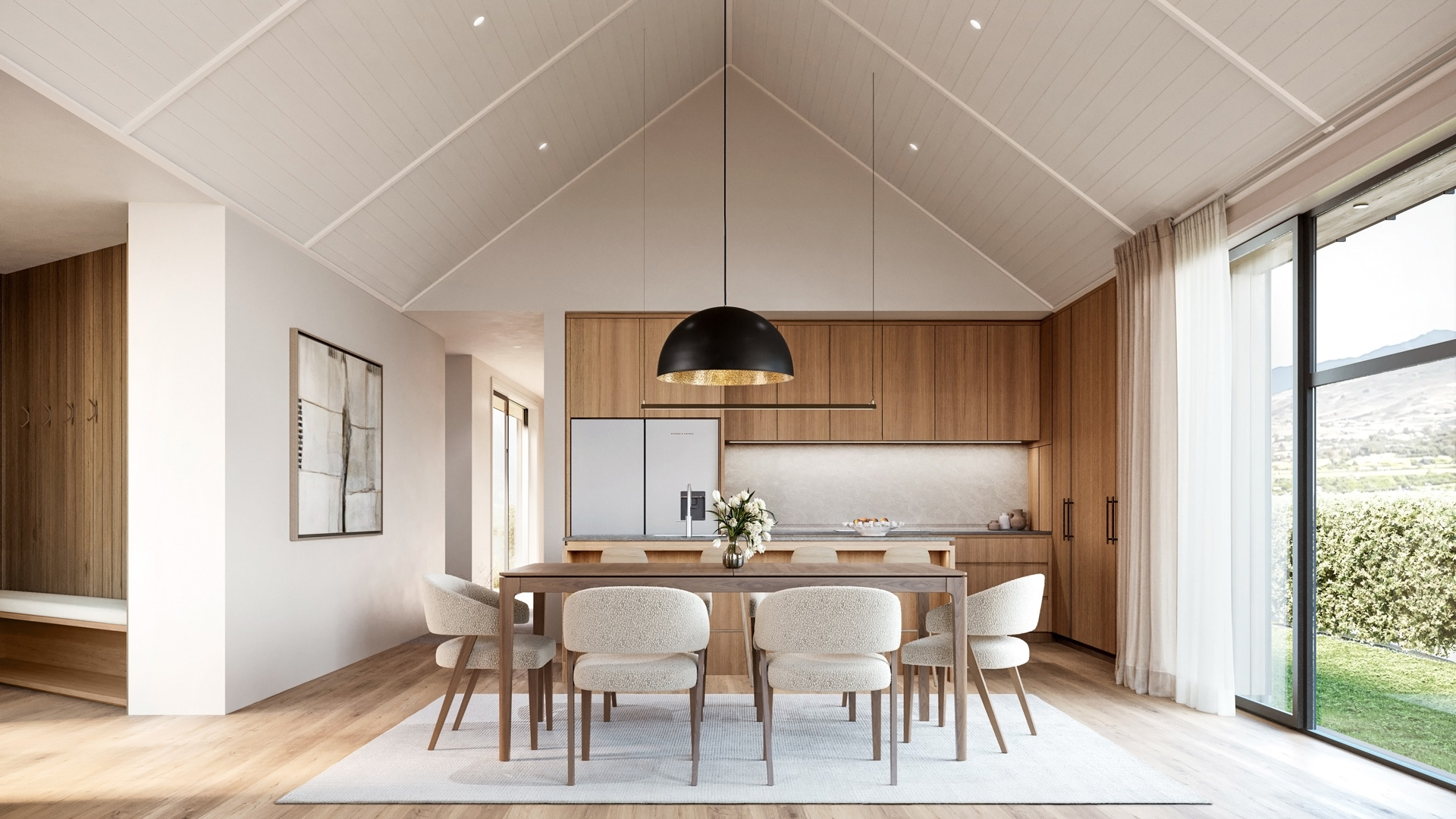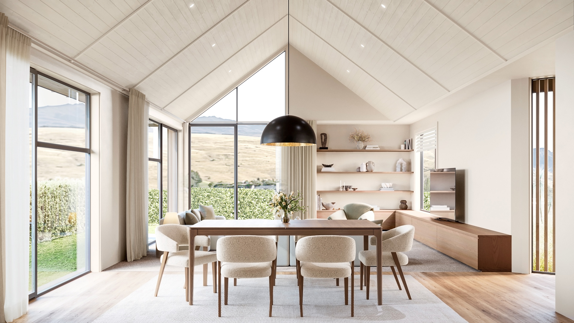 The open-plan living area creates a welcoming heart of the home, flowing effortlessly to outdoor spaces. Well-planned bedrooms, a smartly designed kitchen, and a double-car garage provide everyday convenience. Whether as a first step into Kawarau Heights or a low-maintenance retreat, this uniquely designed home offers contemporary alpine living with a twist.